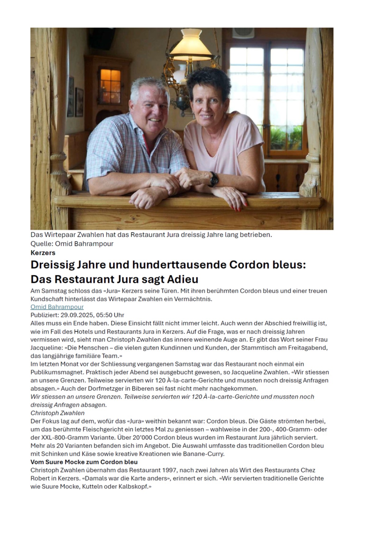 Und vielleicht bald in unserem Hause Hotel Restaurant Jura